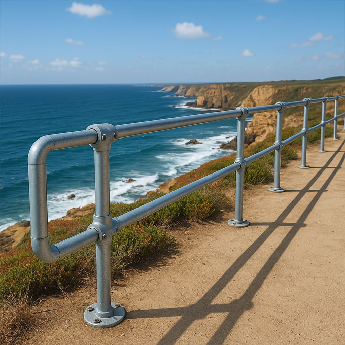 Quadratische Rohrverbinder sorgen für klare Kanten und stabile Winkel – ein entscheidender Vorteil bei dauerhaft eingesetzten Geländersystemen, beispielsweise auf Laufwegen, Industriepodesten oder Wartungsstegen. Ihre Struktur verhindert ein Verdrehen der Rohre und garantiert höchste Stabilität – auch bei starken Belastungen oder langfristiger Beanspruchung. Besonders in Bereichen mit hohen Sicherheitsanforderungen, wie Industrieanlagen oder öffentlichen Einrichtungen, bieten sie eine normgerechte und dauerhaft belastbare Lösung.