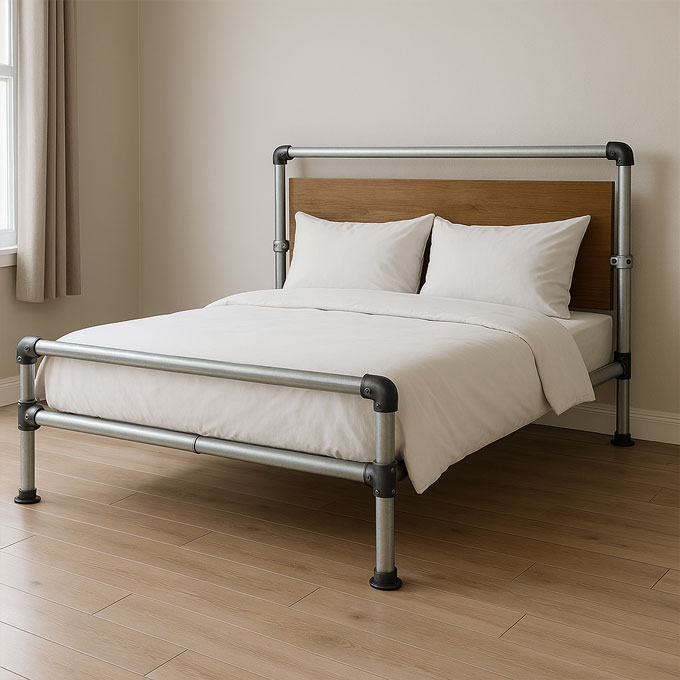 Unsere Rohrverbinder lassen sich einfach und werkzeuglos montieren, was sie zur perfekten Lösung für DIY-Projekte macht – ganz gleich, ob du Anfänger oder geübter Heimwerker bist. Dank ihrer Modularität kannst du Möbel jederzeit erweitern, anpassen oder neu gestalten. Das macht sie nicht nur flexibel, sondern auch besonders nachhaltig: Einzelne Elemente können bei Bedarf wiederverwendet und in neue Ideen integriert werden.
